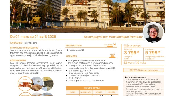 - Tours Chanteclerc - Séjour d'un mois en Costa Del Sol, Bajondillo - 1er mars 2026 - 1 jours